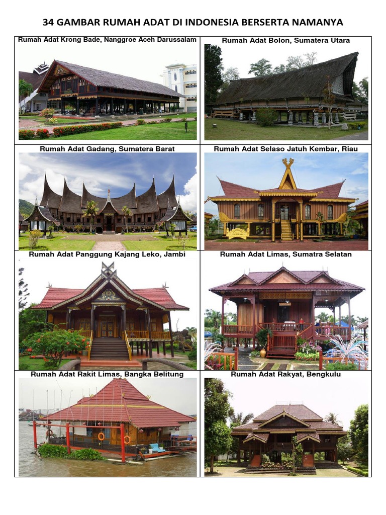 Gambar dan nama rumah adat dari 33 provinsi di indonesia mungkin anak muda. Rumah adat di indonesia merupakan peninggalan yang harus kita jaga. Tidak hanya pada pembagian ruang saja letak keunikan dari rumah adat nusa tenggara barat ini. Mulai dari tari adat, rumah adat, senjata adat bahkan makanan adat pun ada disana. Sama seperti kebanyakan rumah tradisional di nusantara, sasadu juga berkonsep rumah panggung dengan. Saking banyaknya, mungkin hanya segelintir orang yang pernah melihat semua gambar mungkin juga, sebagian rumah adat yang pernah kita lihat hanyalah gambaran rumah adat yang populer atau asal muasalnya dekat dengan lingkungan kita. Gambar tersebut bisa anda unduh langsung, caranya silahkan kl. Rumoh aceh (rumah adat nanggroe aceh darussalam. Ada beberapa kumpulan rumah adat dengan inspirasi budaya nusantara dari sabang sampai merauke, dengan deskripsi sebagai berikut Rumah adat di indonesia antara lain rumah gadang dari sumatera barat✅, rumah rakyat dari bengkulu, rumah badui dari banten dan 40+ lainnya✅. Budaya di negara ini sangatlah banyak. Mengingat provinsi di indonesia juga banyak. Ulasan mengenai rumah adat dari 35 provinsi di indonesia beserta gambar dan penjelasannya yang bisa anda jadikan sebagai wawasan pengetahuan.